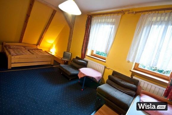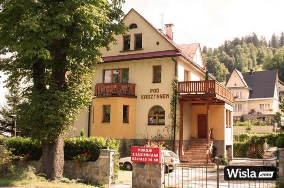 Willa „Pod Kasztanem” usytuowana w malowniczej dolinie Kopydło, nieopodal centrum Wisły. Obiekt zapewnia noclegi w pokojach 2 i 3 osobowych z łazienkami i TV oraz apartamenty dla 4 i 5 osób. Każdy pokój posiada: łazienkę, TV, czajnik bezprzewodowy oraz podstawową zastawę (sztućce, kubki, talerze). W sezonie zimowym jest to wspaniale miejsce do uprawiania sportów zimowych. W bliskiej odległości od Willi znajduje się wyciąg –Pasieki, Siglany i Stożeki (naśnieżane i oświetlane) oraz kolej linowa – Stożek. Przy obiekcie znajduję się rzeka – Kopydło oraz kościół zabytkowy, a także restauracje „Olimpia” i „u Karola”, gdzie można posmakować tutejszej kuchni